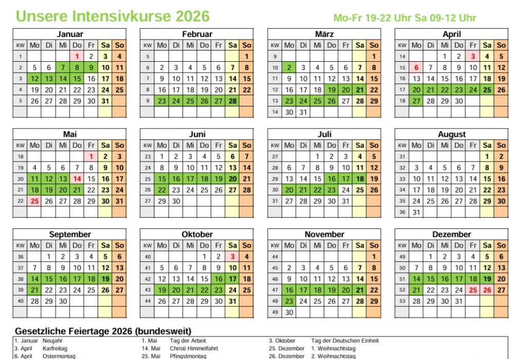 Unterrichtszeiten, Mo-Fr 19.00-22.00 Uhr , Samstags 9.00-12.00 Uhr